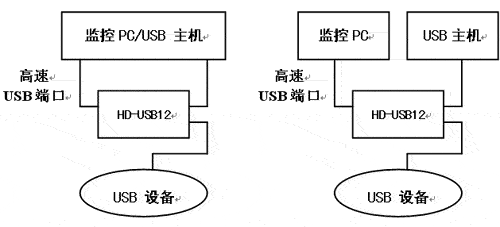 監(jiān)控計(jì)算機(jī)與USB主機(jī)使用同一臺(tái)PC機(jī);