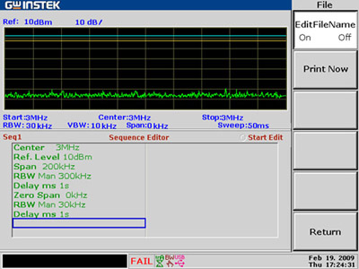 然而,并不須在產(chǎn)在線用兩臺頻譜分析儀先后做測試,廠商推出的頻譜分析儀為用戶提供了一套簡便實(shí)用的自動測量系統(tǒng)(SEQ),只須從前面板設(shè)置好測量順序設(shè)定,再經(jīng)過一鍵操作,儀器會方便地單次或連續(xù)運(yùn)行不同的測量設(shè)定,抑或由使用者指令一步步地運(yùn)行整個(gè)測量步驟。