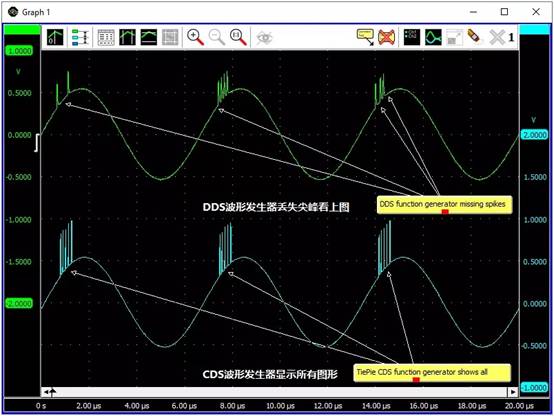 老的DDS任意波形發(fā)生器能隨機(jī)丟失峰值,而CDS函數(shù)生成器始終生成所有峰值。