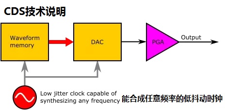 WS5和HS5任意波形發(fā)生器中所采用的CDS技術(shù)優(yōu)于近幾十年來傳統(tǒng)的直接數(shù)字合成(DDS)技術(shù)。DDS在產(chǎn)生低頻信號(hào)時(shí)存在抖動(dòng)大、總諧波失真大等缺點(diǎn)。CDS消除了這些缺點(diǎn),使工程師用上高精度和以前無法負(fù)擔(dān)價(jià)格的任意波形發(fā)生器。