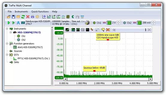 HS5函數(shù)發(fā)生器發(fā)出的正弦波具有極低的雜波。
