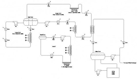 這個Goliath PC冷卻裝置運行在一個由管道、制冷、水箱和布線組成的復雜網絡上。冷水機和冷水箱泵由手動控制,其余由labjackU3-LV和DaqFactory控制。它是由一位客戶設計和建造的。