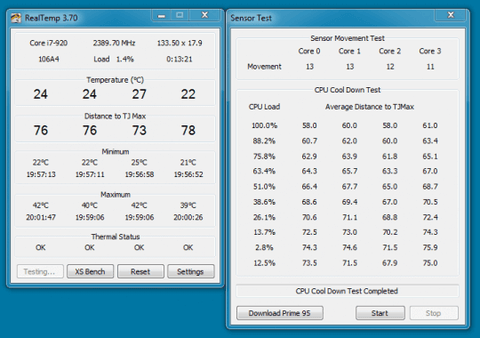 在大多數地方,水本身的溫度都低于環(huán)境溫度,CPU在23-24C左右閑置。在大量負載下(運行prime95),CPU最高可達41C。在大多數情況下,GPU卡是限制組件,因為它們的運行溫度比CPU高一點。