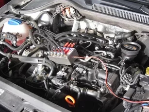 為了檢查噴射器的狀態(tài),可以測(cè)量單個(gè)噴射器的返回流,并與其他噴射器的返回流進(jìn)行比較。一種常見的方法是斷開返回線路,用小罐捕捉返回的燃料,每個(gè)噴油器一個(gè)。在發(fā)動(dòng)機(jī)運(yùn)行一段時(shí)間后,測(cè)量和比較了罐中的燃料量,可以發(fā)現(xiàn)有缺陷的噴油器。這種方法有一些缺點(diǎn)。它不能用于燃料噴射系統(tǒng),因?yàn)樵撓到y(tǒng)的回程是加壓的。其次,在駕駛汽車中進(jìn)行這種測(cè)試是很復(fù)雜的,在這種情況下,問題只發(fā)生在駕駛時(shí)。而且由于開著的罐子,燃料有溢出的危險(xiǎn)。