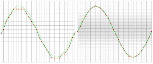 而Handyscope HS5具有14bit和16bit更高的顯示分辨率,使其成為一個真正高精度的示波器。由于它的高分辨率,使初始信號的采樣更加精確,量化誤差更低。更高分辨率的效果可以從下圖中清晰看到: