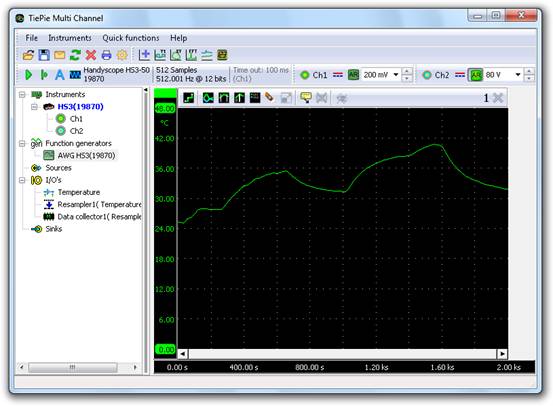 當(dāng)具備了無限深存儲之后,測量的數(shù)據(jù)直接流傳入磁盤成為可能。在14位分辨率下,Handyscope HS5可以每秒流傳20M樣本。使用流傳測量,復(fù)雜的問題也可以輕松進(jìn)行測量、追溯和分析。