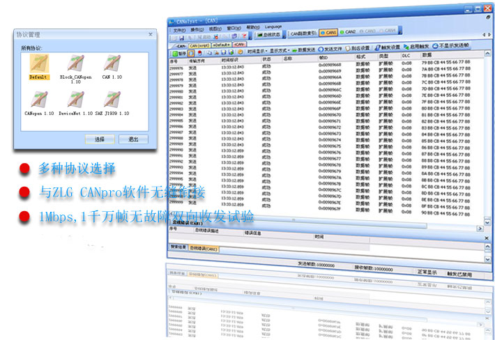 分析儀軟件兼容ZLG“CANPro協(xié)議分析平臺(tái)V1.45”、兼容“CAN通訊測(cè)試工具ZLGCANTest”及