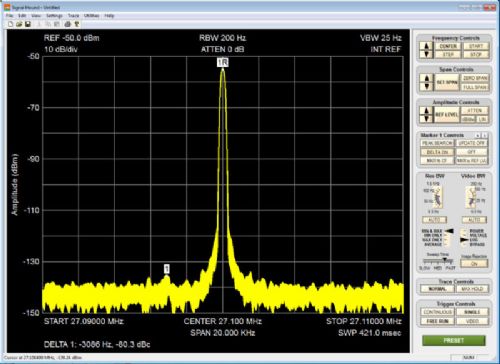 The Signal Hound USB-SA44B is a Software Defined Radio (SDR) optimized as a spectrum analyzer. It is compact, simple to use, and an effective troubleshooting tool for general lab use, engineering students, ham radio enthusiasts, and electronics hobbyists. Using recent innovations in RF technology, the Signal Hound has the sensitivity, accuracy and dynamic range you抎 expect in a unit many times its cost.
