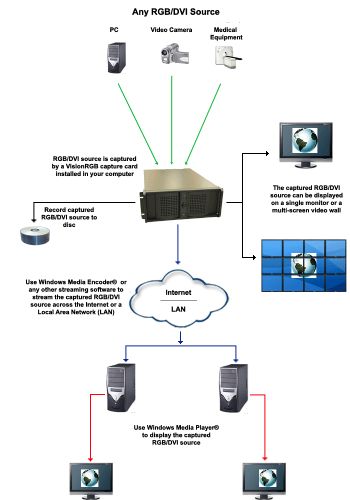 可使用DMA拷貝到主機(jī)系統(tǒng)進(jìn)行顯示,存儲(chǔ)或流傳輸。只要 RGB或DVI 數(shù)據(jù)在非Datapath圖形卡上顯示, Vision RGB-X2就會(huì)把數(shù)據(jù)發(fā)送到系統(tǒng)內(nèi)存上, 然后操作系統(tǒng)將數(shù)據(jù)拷貝到顯示器上.在使用Datapath 圖形卡時(shí), Vision RGB-X2 直接傳輸數(shù)據(jù)到圖形卡從而增強(qiáng)性能。Vision RGB-X2將采集的數(shù)據(jù)部分發(fā)送到每一個(gè)視頻通道,并指示每個(gè)通道使用其圖形引擎更新發(fā)送數(shù)據(jù). 這樣就利用硬件大大提高了性能。英國(guó)Datapath公司的VisionRGB- X2卡是一款應(yīng)用于實(shí)時(shí)采集模擬或DVI源的理想解決方案。其典型的應(yīng)用包括: