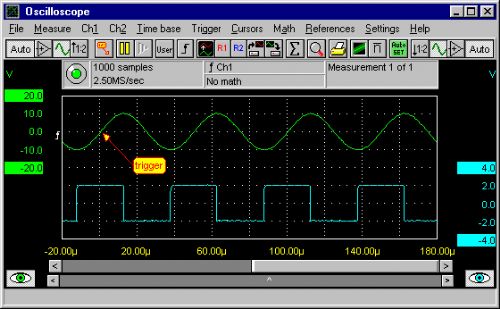 示波器靠軟件實(shí)現(xiàn)了一個先進(jìn)的滾動記錄條,滾動條的寬度表示了總的記錄內(nèi)容,底部滑動塊的寬度表示了記錄的可見顯示部分,如果要改變所觀察記錄大小,可用鼠標(biāo)抓著滑動塊的邊沿拖動它到左或右,觀察前后的信號波形,滑塊的寬度也相應(yīng)改變,如國要改變所觀察記錄的偏移,抓住滑塊本身和拖它到優(yōu)先的位置。